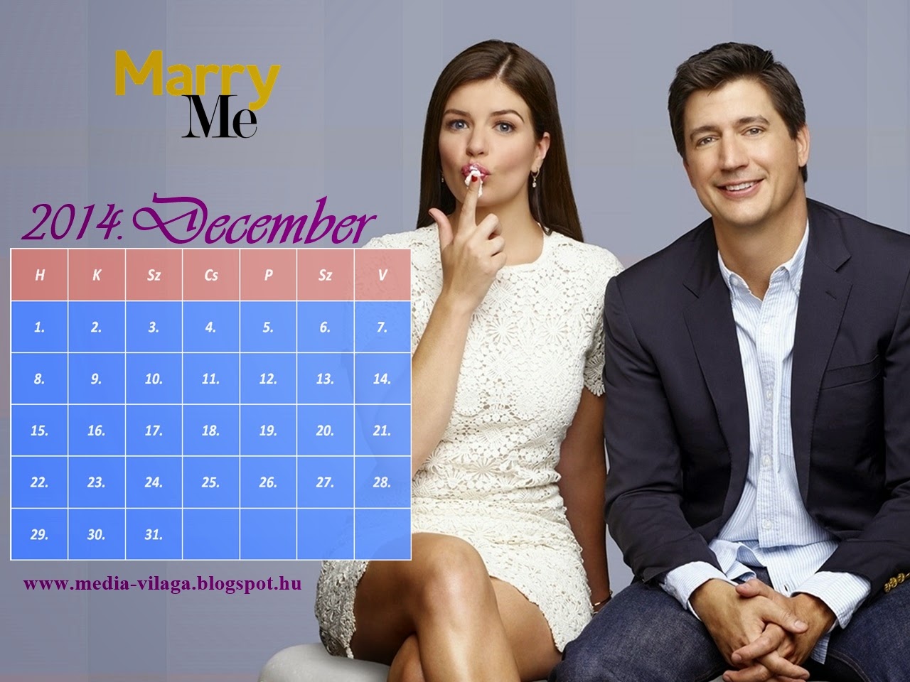 Az ünnepek miatt nagyon szeretem a Decembert, ugyanakkor ráébreszt, hogy a rettegett vizsgaidőszakig már csak pár hét van hátra, így most nagyon nem vártam. De az idő ellen nem lehet semmit sem tudni, így marad a tanulás ezerrel. De eltértem a tárgytól, egy nap csúszással ugyan, de elkészítettem a Decemberi Háttérképnaptárat. Főszerepben ismét egy újonc sorozat, mégpedig az NBC-n futó Marry Me, ami nekem nagyon bejött. 🙂